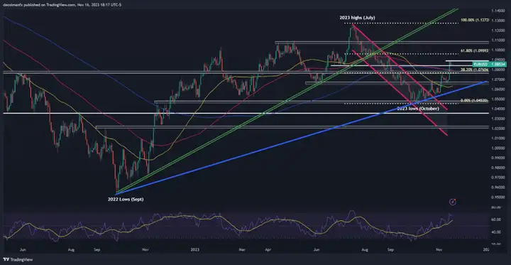 欧元/美元在前一交易日温和回调后,周四表现平淡。尽管市场犹豫不决,但欧元兑美元仍保持建设性偏见,价格最近创下更高的高点和更高的低点,并高于关键移动平均线。