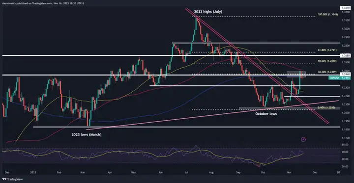 如果多头重新夺回控制权,预计初始阻力位在1.2450/1.2460。上行清除这一障碍可能会引起新的买盘兴趣,为潜在反弹至 100 日简单移动平均线奠定基础。进一步走强后,我们可能会看到向1.2590移动,这代表了7月/10月下跌的50%斐波那契回撤位。