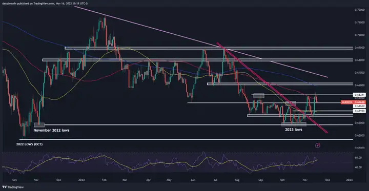 另一方面,如果该货币对继续上涨,则技术阻力位在0.6500关口附近。克服这一障碍可能会给看涨阵营带来挑战,但清晰明了的突破可能会催化反弹至 200 天简单移动平均线,略低于 0.6600 水平/