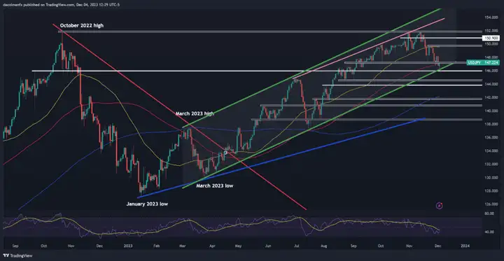 • 美元/日元从趋势线支撑位反弹,收复 147.00 手柄