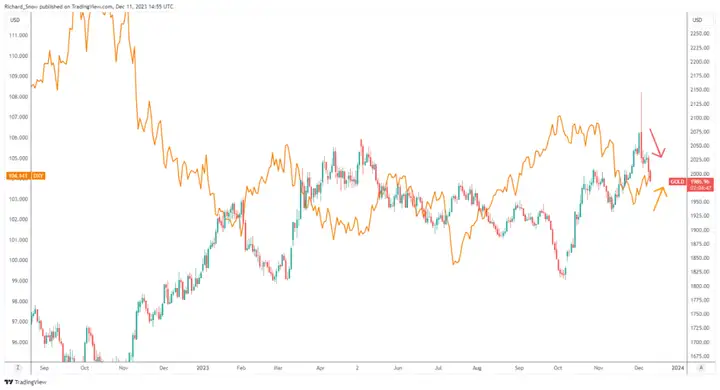 在美国失业率从3.9%降至3.7%后,11月就业数据好于预期,降温了2024年大规模降息的预期。由于就业市场保持相对强势,美联储可能不得不将利率维持在限制性水平,时间比市场预期的要长一些。随之而来的降息预期下调为美元和美国国债收益率提供了一股新鲜空气,美元和美国国债收益率都已从各自的低点回落。