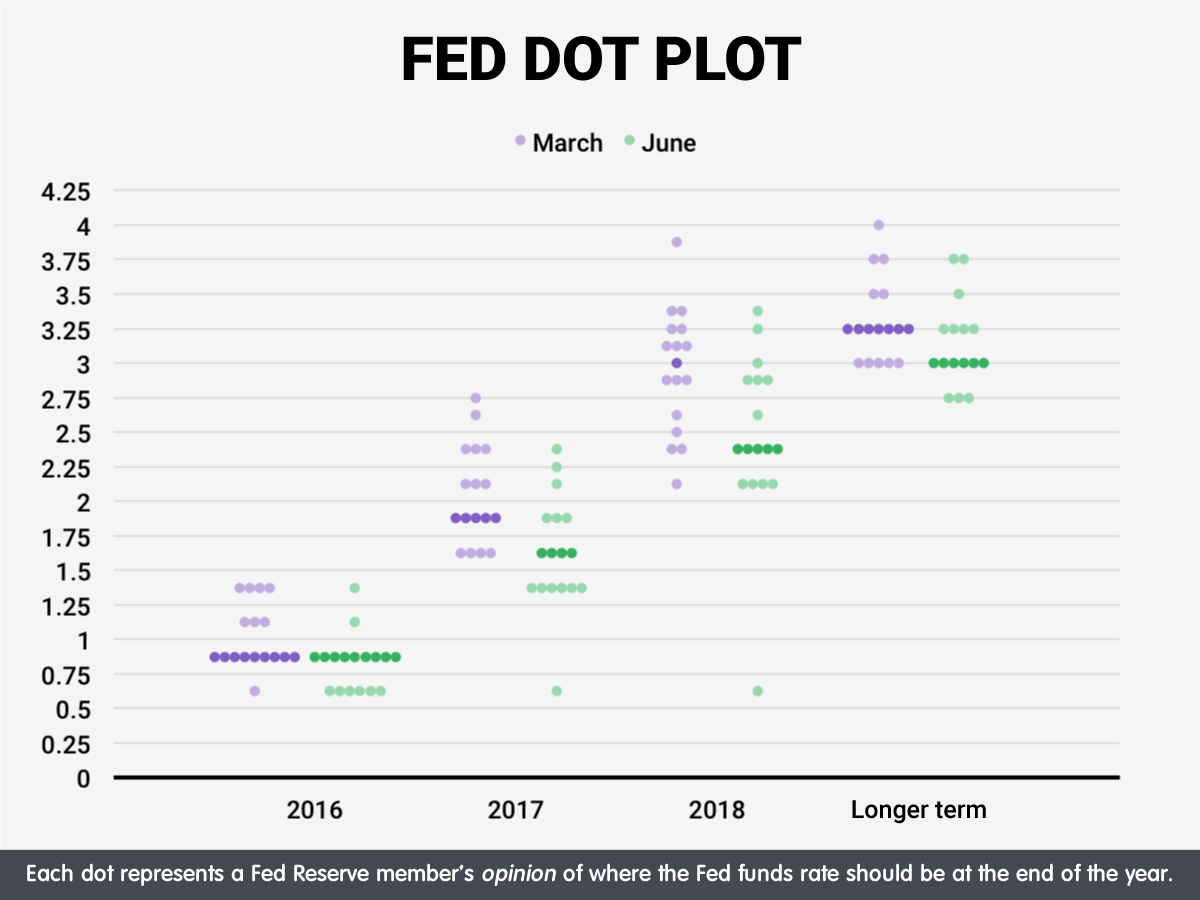 美联储点图,这是美联储每次会议后公布,显示美国联邦公开市场委员会的16名成员的预测(美联储谁实际上是负责制定利率的头面人物)。