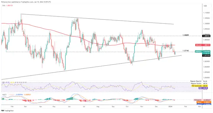 澳元/纽元测试阻力位1.0740,并可能测试200 SMA