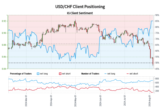 从散户交易者的持仓数据来看,84.44%的交易者持有美元/瑞郎的多头头寸,多空比高达5.43:1,显示出市场对瑞士法郎的强烈偏好。