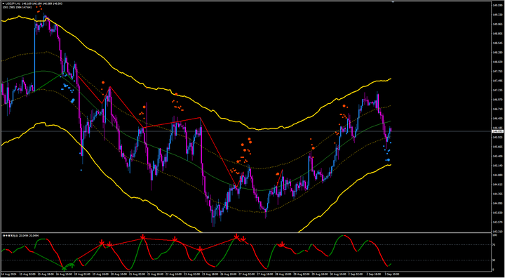 外汇指标系统,是通过复杂的计算,得出准确的数据,在通过对数据进行精确计算划分,将K线行情切分成不同的区域,再对不同区域进行常规意义上的K线形态划分,通过K线所处的区域对行情进行甄别属于是震荡行情还是趋势行情。通过指标对行情进行分析预判的时候一定会有假信号出现,我们需要通过自身的交易经验去筛选信号。指标系统不在于让我们一劳永逸,而是通过指标所给出的信号给我们提供一个参考,当指标的判断和我们交易思路的判断达成一致,则可以去尝试!外汇指标系统可以为我们提供的是开拓性视野,可以让我们了解别人是如何做交易的,如何搭建交易系统的,我们则可取其精华去其糟粕,不断升华自身的交易经验。 - 想要让您的交易更加轻松自如,最好的选择就是使用我们的EA交易系统!无需手动操作,自动化交易将会为您节省时间和精力,并且在市场变化时始终保持警觉。我们的EA交易系统采用最先进的算法和技术,确保您的交易快速、准确、稳定,并在市场波动时保持灵活应变。让我们的EA交易系统成为您的交易利器,让您在交易市场中轻松获得胜利!