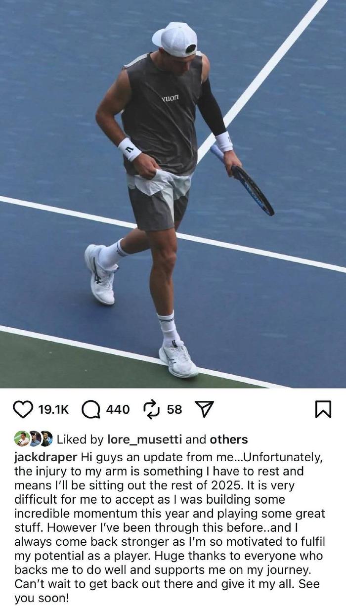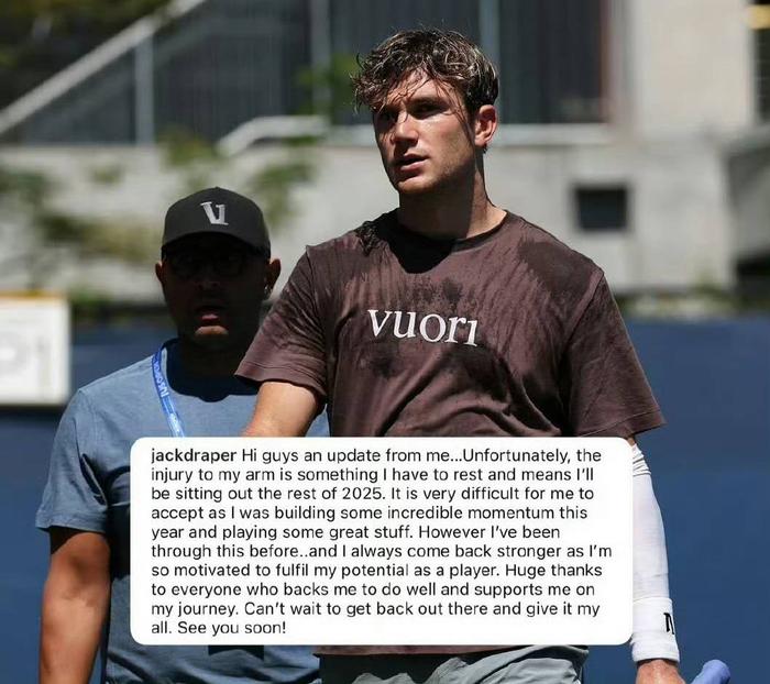 据悉,德雷珀的左臂骨挫伤已经困扰他数月之久尽管在五月红土赛季期间就已感到不适,但他仍坚持参赛并在女王锦标赛中闯入四强然而伤势持续影响着他的发挥,特别是在发球环节医疗团队评估后建议他进行长期休养,以便更好地恢复。