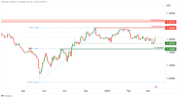 (欧元/美元走势图 来源:IC Markets)英镑/美元英镑/美元已经从即期支撑位1.1847逆转,该货币对可能上升到第一个阻力位1.2440,第二个阻力位在1.2671关于支撑位,英镑/美元的第一个支撑位在1.1630,这是与38.2%斐波那契回撤位重叠的支撑位。