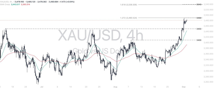 XAUUSD延续反弹行情,高点持续抬升且均汇通财经集团官网线多头发散,强化了上涨动力及进一步上行的潜力若突破3490,价格有望冲击斐波那契161.8%延展位3540反之,若跌破3490,可能回踩3450支撑 综合以上分析,当前阻力最小的路径似乎是美元指数继续走弱,而黄金价格保持坚挺。