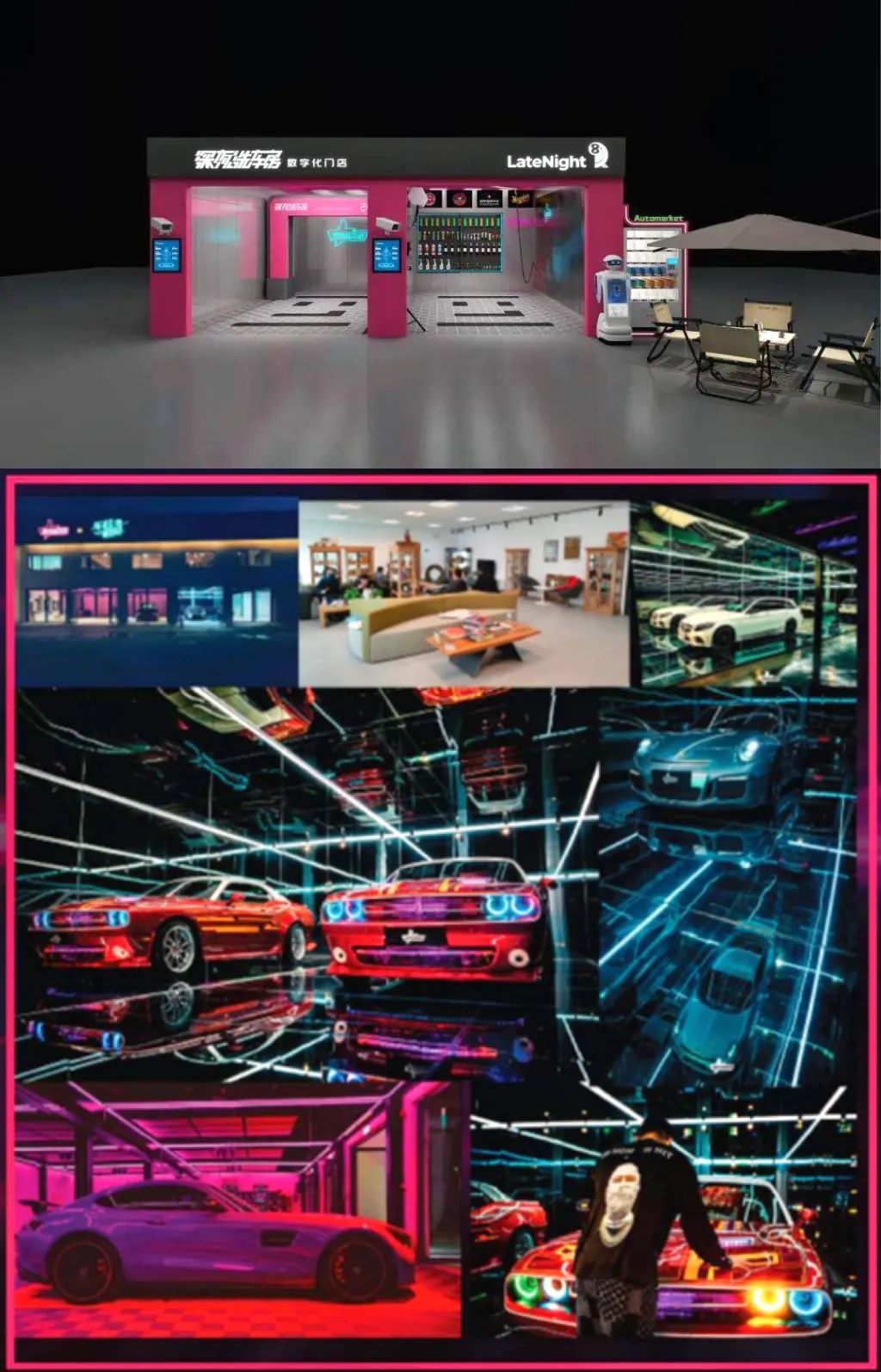 图片来源:深夜洗车房此外,深夜洗车房具有较强的内容制作和流量运营的能力,帮助门店解决获客问题比如,把店内空间布置成赛博朋克的炫酷风格,再加上拍摄装置,鼓励车主拍摄打卡;同时结合一些网红探店、营销活动为门店引流。