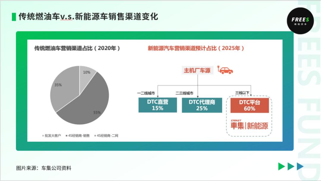 新车销售市场, 一个趋势是传统4S店部分被直营销售中心+多品牌授权集合店的销售模式取代 二手车交易市场, 新能源车车况标准化程度提升,定价体系更加标准透明,为互联网平台提供了新的机会对于 整车物流体系, 零担拼车的需求更强,对数字化能力的要求更高。