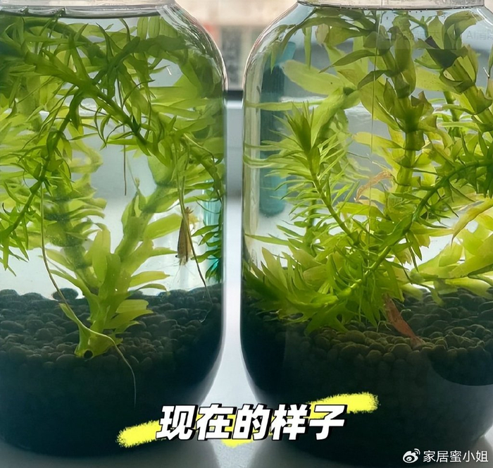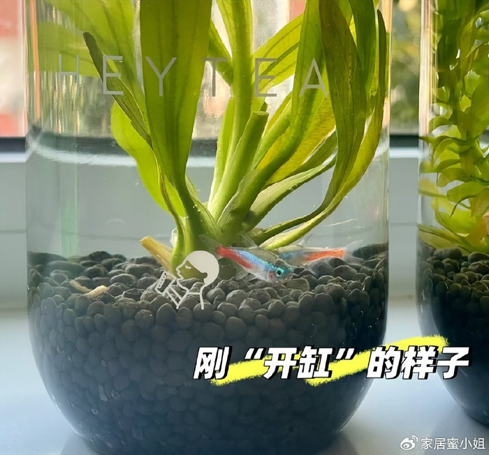 喝完的奶茶瓶子,洗干净之后,在最底下方一层石头,然后放一些植物,再把小鱼放进去,一个生态缸就做好了。