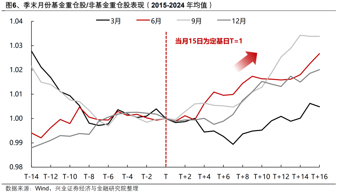 4. 9月季末主动基金调仓效应较为明显临近季末,公募基金为控制风格漂移通常会进行调仓,从而导致市场出现较为明显的调仓效应。从风格上看,越临近季末,基金重仓股相对非基金重仓股的超额收益就越显著。