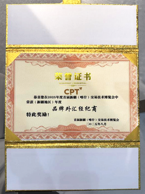 2025年8月9日,首届新疆(喀什)交易技术博览会在喀什盛大开幕,大会以“聚焦交易内核 解除交易困扰”为主题,旨在为交易者提供专业指引、工具展示和行业交流的平台全球知名经纪商CPT Markets凭借其在金融服务领域的卓越表现和深厚实力,荣获大会颁发的“新疆地区年度品牌外汇经纪商大奖”。