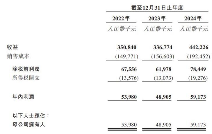 2022年、2023年、2024年,泰德医药的收益分别为3.51亿元、3.37亿元、4.42亿元;年内利润5398万元、4890.5万元、5917.3万元。