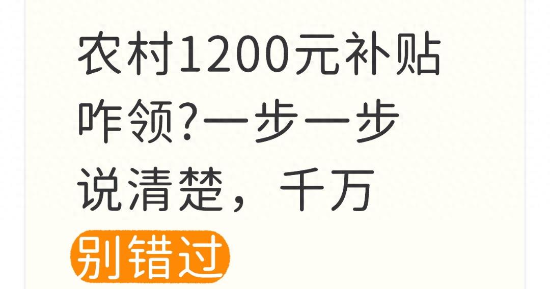 农村有笔1200元的补贴,不少老乡还在犯懵:“这钱咋领?啥条件能领?” 今天把“谁能领、咋领、注意啥”一次性讲透,别让到手的补贴悄悄溜走!