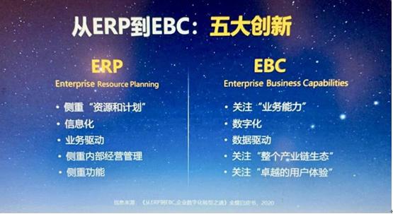 EBC是企业顺应数字化时代发展的产物,在云原生时期孕育而出的产物,是一种全新的数字化生态体系然而从ERP 和 EBC ,到底有哪些变化?金蝶中国高级副总裁赵燕锡介绍称,EBC实现了从资源计划到业务能力、从经营管理到产业链生态、从流程驱动到数据驱动、从单体架构到云原生架构的5个方面的重大突破。