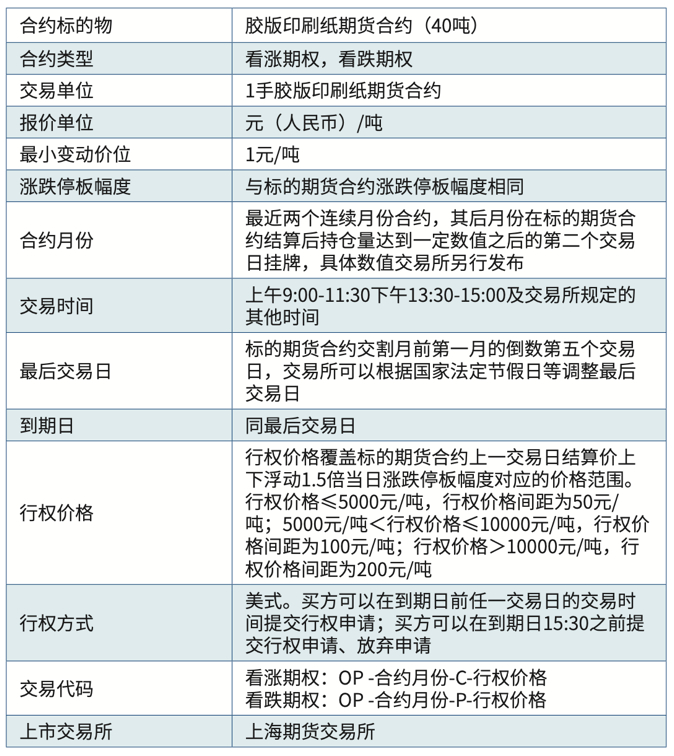 资料来源:上海期货交易所胶版印刷纸期权合约