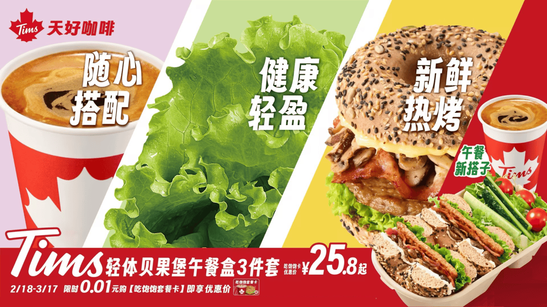 套餐一上线就受到许多年轻消费者追捧,据tims天好发布的一季度的财报中,中国门店营收上涨亏损大幅收窄,品牌将其归因为轻体贝果堡午餐盒系列新品推动了午餐时段销售占比提升【1】。
