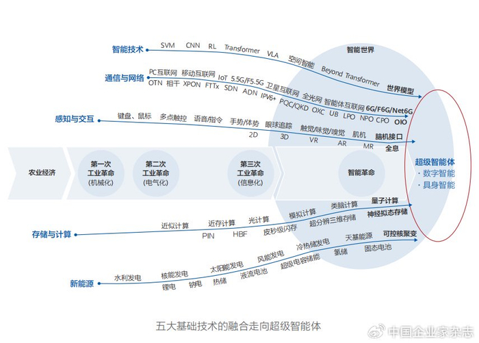 来源:《智能世界2035》报告以下是报告内容摘编: 第一部分:与AI共进通往智能世界2035的十大技术跃迁 未来十年,信息科技将会发生重要跃迁这并非单一技术的线性发展,而是一场由数据、智能技术、感知与交互、算力、网络、新能源等核心要素共同驱动,深刻贯穿数字世界与物理世界的系统性跃迁,是一个复杂的系统工程。