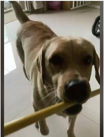 过了会,没想到这只拉布拉多竟然用嘴叼来一棍子并交到了主人手上,意思是说如果是它犯了错要打棍子才可以!哈哈,如此对待自己的小伙伴,不怕它以后找你的麻烦吗?