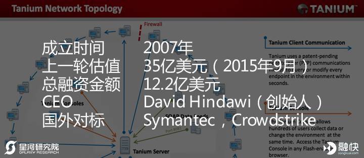 Tanium是一家提供端点安全与企业网络系统管理的公司,其解决方案可以一下子扫描和控制数千台设备的安全性,为企业找出潜在的恶意软件,并提供近似实时快照的安全监控,技术人员能远程清理维护软件漏洞通过Tanium,系统管理员可以在数秒时间内访问台式电脑、笔记本电脑、服务器、收银机、乃至心率监视器。