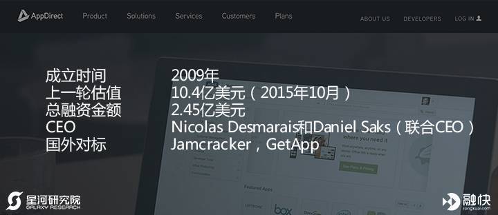 收费模式主要靠订阅服务2)AppDirect:企业版的App Store