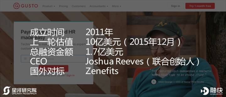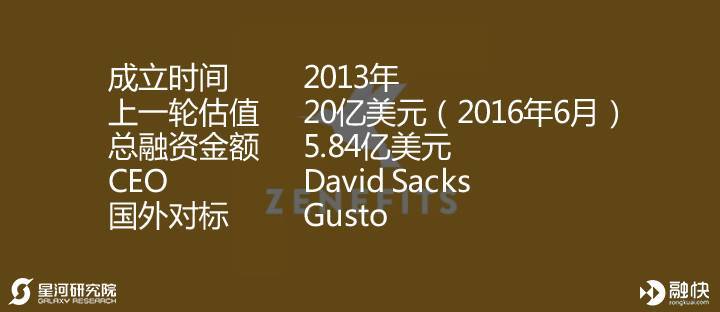 Gusto原名为ZenPayroll,是一家为中小企业提供薪资软件和健康福利管理等人力资源软件和服务的公司,是人力资源行业仅次于Zenefits的独角兽通过自动化完成复杂繁琐的薪资业务,使员工能够简单和愉快的完成包含工资设定、福利、人力资源管理等业务。