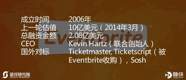 目前全球用户超过4800万,其中13万付费用户8)Eventbrite:小型线下活动票务管理服务商