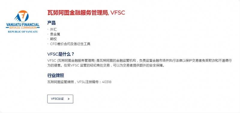 亨达国际瓦努阿图VFSC监管 VFSC (瓦努阿图金融服务管理局) 是瓦努阿图的金融监管机构,负责监督金融市场并执行法律以保护交易者免受欺诈和不道德行为的侵害在受VFSC 监管的经纪商处交易,可以为交易者提供额外的安全保障。