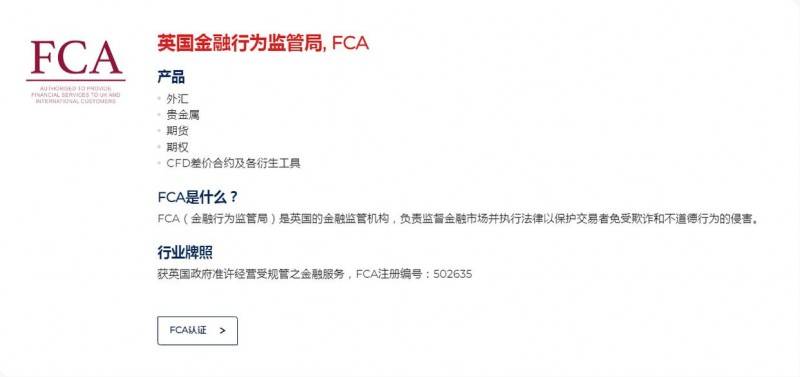 亨达国际英国FCA监管 FCA(金融行为监管局)是英国的金融监管机构,负责监督金融市场并执行法律以保护交易者免受欺诈和不道德行为的侵害主要提供电子盘交易产品:贵金属,外汇,期权,期货,CFD差价合约及各衍生工具。