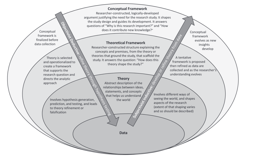 此外,那些提供答案的出版物很少关注医学教育研究中各种研究方法的定义是否存在不同由于理论、理论框架和概念框架这三个术语在不同的范式中可以有不同的解释和应用,本研究采用折衷主义,试图澄清它们之间的区别和联系。