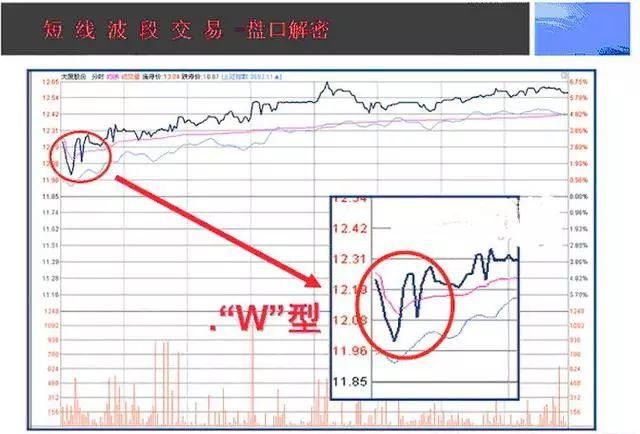 B.“W”型走势:与 “N”字型走势类似——只是多了一次探底,在分时形态上形成一个“W”形走势。