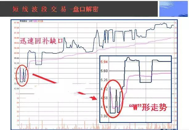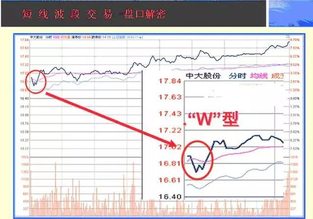 B.“W”型走势:与 “N”字型走势类似——只是多了一次探底,在分时形态上形成一个“W”形走势。