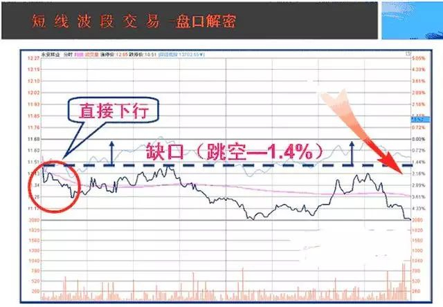 特别提示:  在有跳空缺口的开盘中,开盘后有没有立刻回补缺口的动作以及该动作的力度大小,是 全天走势方向是否明朗的重要标志  如果跳空开盘后没有任何回补动作,那么全天的股价走势必然会沿着跳空的方向运行