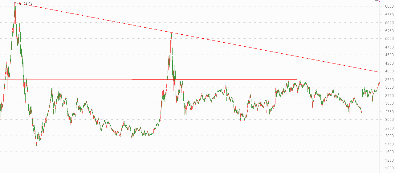 从中长期趋势来看,3700点和4000点附近均有压力,如果突破4000点大关,那么到时步入大牛市的概率会加大目前可能处于牛市初期