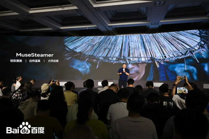 它还能创新性地一体化生成带有音效和人物台词的视频 目前,MuseSteamer Turbo版已上线百度AI视频创作平台——绘想平台,开启限时免费公测 AI Day是我们举办的系列开放日活动,将持续介绍百度AI的前沿进展和产品新动态,一起来感受下活动现场。