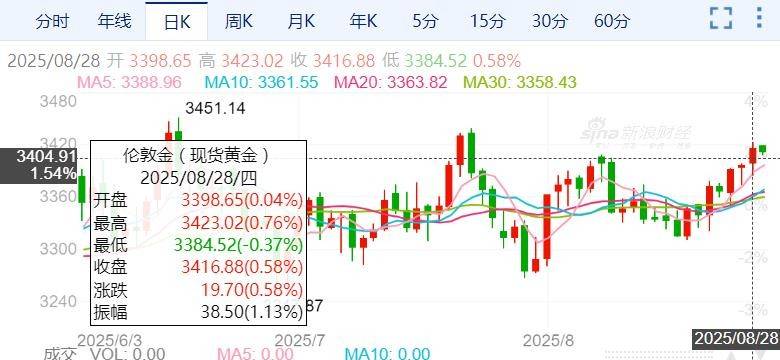 周四(8月28日),现货黄金价格强势突破3400美元心理关口,最高触及每盎司3423.02美元,创下自7月23日以来的五周最高点这场金价飙升的背后,是美元走软、以色列空袭也门、美联储独立性担忧以及避险资金涌入等多重因素的共同推动。