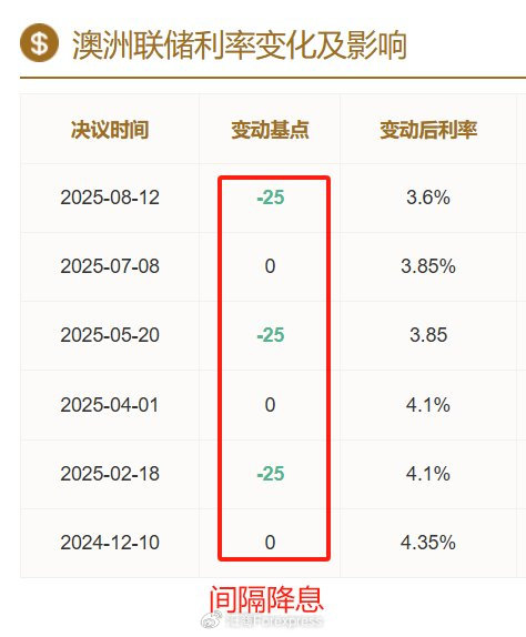▲ATFX图本周二12:30,澳洲联储将公布9月利率决议结果,主流预期认为其将维持3.6%的基准利率不变今年以来,澳洲联储已经降息三次,累计幅度75基点,最近一次降息出现在8月份历史数据看,澳洲联储遵循“间隔降息”的策略,也就是8月份降息后,9月份暂停降息,之后在11月份再次降息。