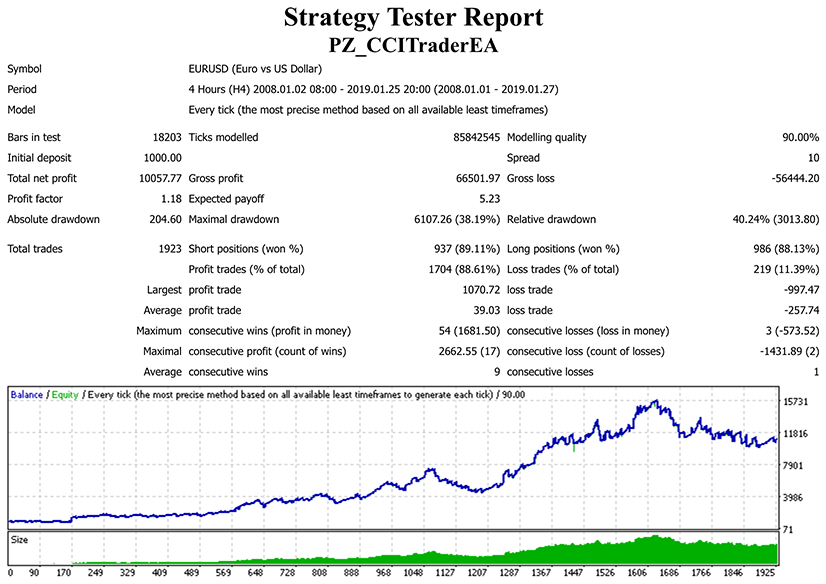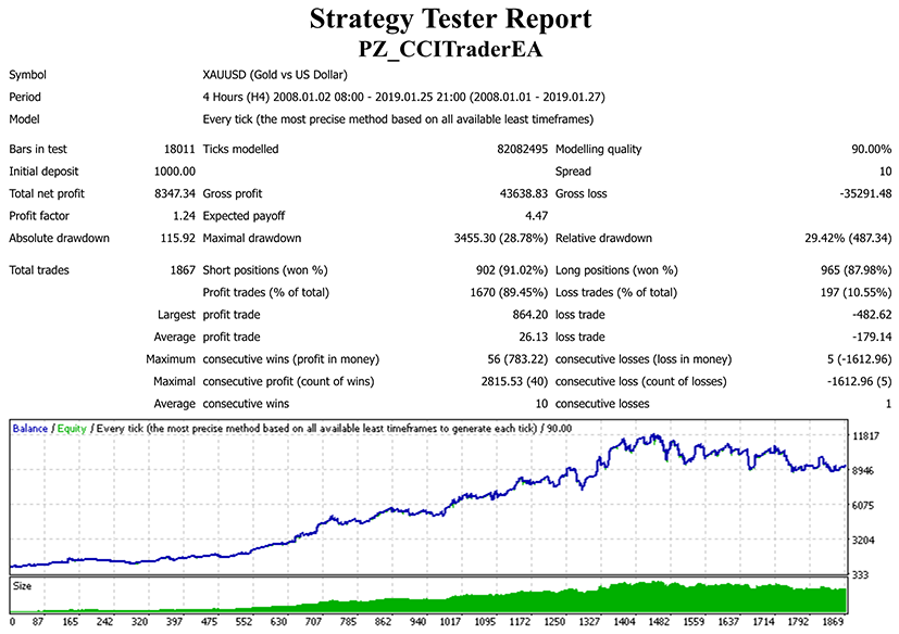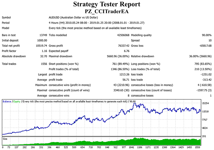 该 EA 使用 CCI 指标进行交易。它提供了许多交易场景和灵活的头寸管理设置,以及许多有用的功能,如可定制的交易时段、倍投模式。