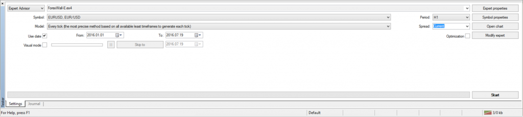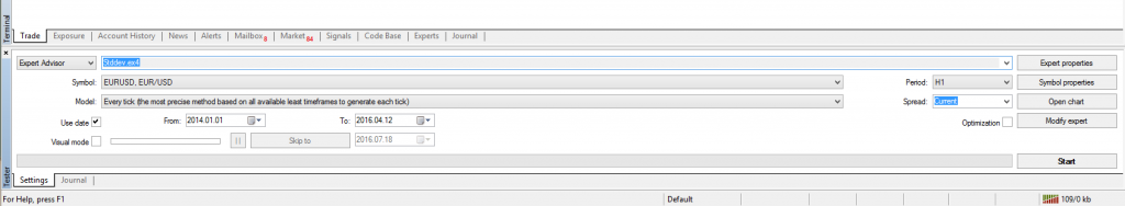 现在回到 MetaTrader 4。您应该仍然在窗口底部有策略测试器。在第一个下拉列表中,您现在应该能够找到您的新 EA: