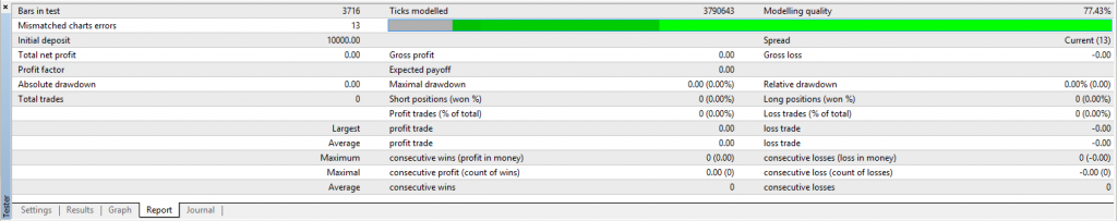 很不错吧?报告选项卡是您将花费大量时间分析您的专家顾问进行的交易的地方。但是,当然,这位专家顾问实际上并没有做太多事情。现在让我们改变它。