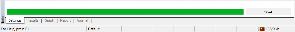 当您使用相同的 Strategy Tester 设置时(From 和 To 日期还不太重要),您可以单击 Start 来测试您新创建的策略。给它一点时间来计算,您应该会在底部看到一个绿色条,表示您的 EA 运行完成。