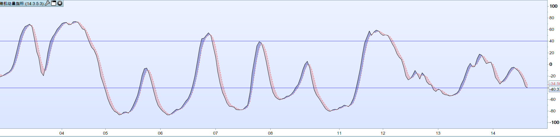 更具体来看,若在40上方出现动能指标线下穿信号线,则可视为做空信号,相反若在-40下方出现动能指标线上穿信号线,则可视为做多信号。
