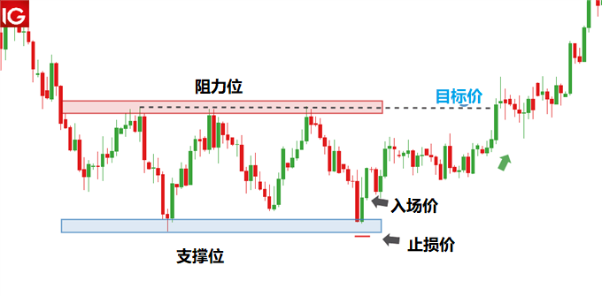备注:当交易方向对了,但价格在还没有达到目标点时便转头下行触发止损点,投资者往往会对此感到非常沮丧,避免出现这种情况的办法是当价格向目标价靠拢时,先平掉一半的仓位锁定利润,然后将止损价设定在盈亏平衡点的位置,这样一来,剩下的头寸就是无风险交易了。
