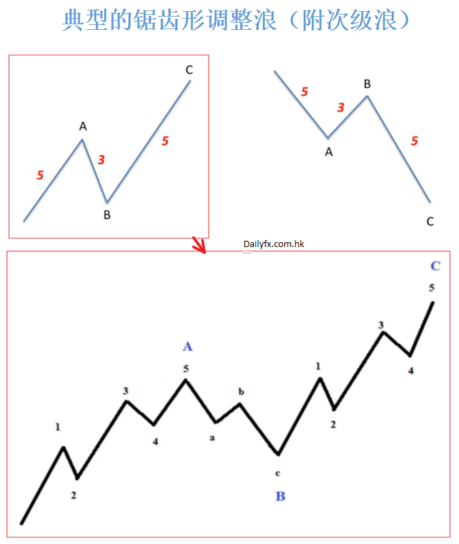 锯齿形调整浪存在三个要点: