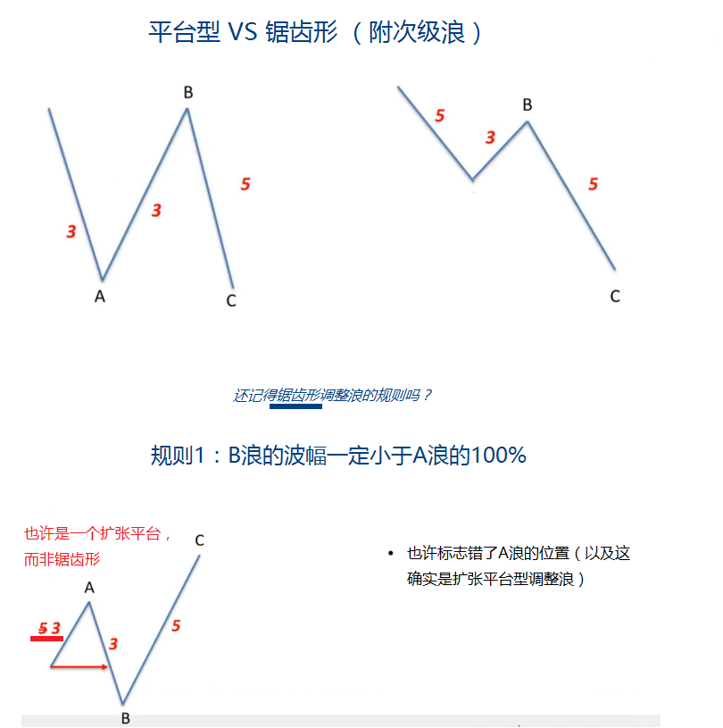 (1)A浪;平台型的分布为3-3-5,而锯齿形的分布为5-3-5;
