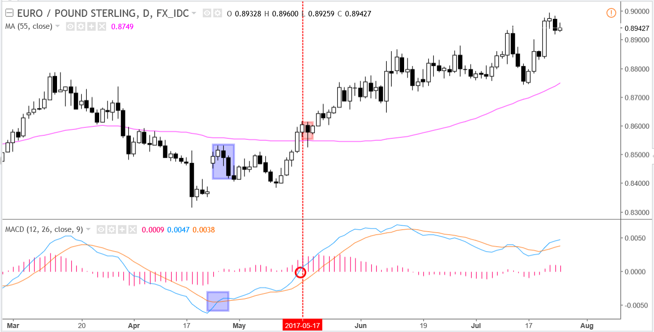 MACD指标应用案例1:MACD指标与简单移动平均线(SMA)的配合使用: