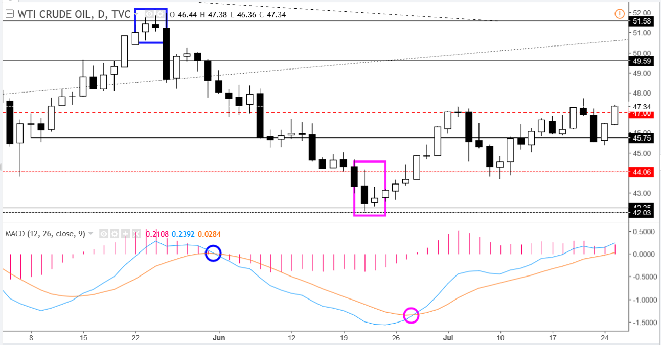 4、零线/中位线:显示12周期EMA穿过26周期EMA 。