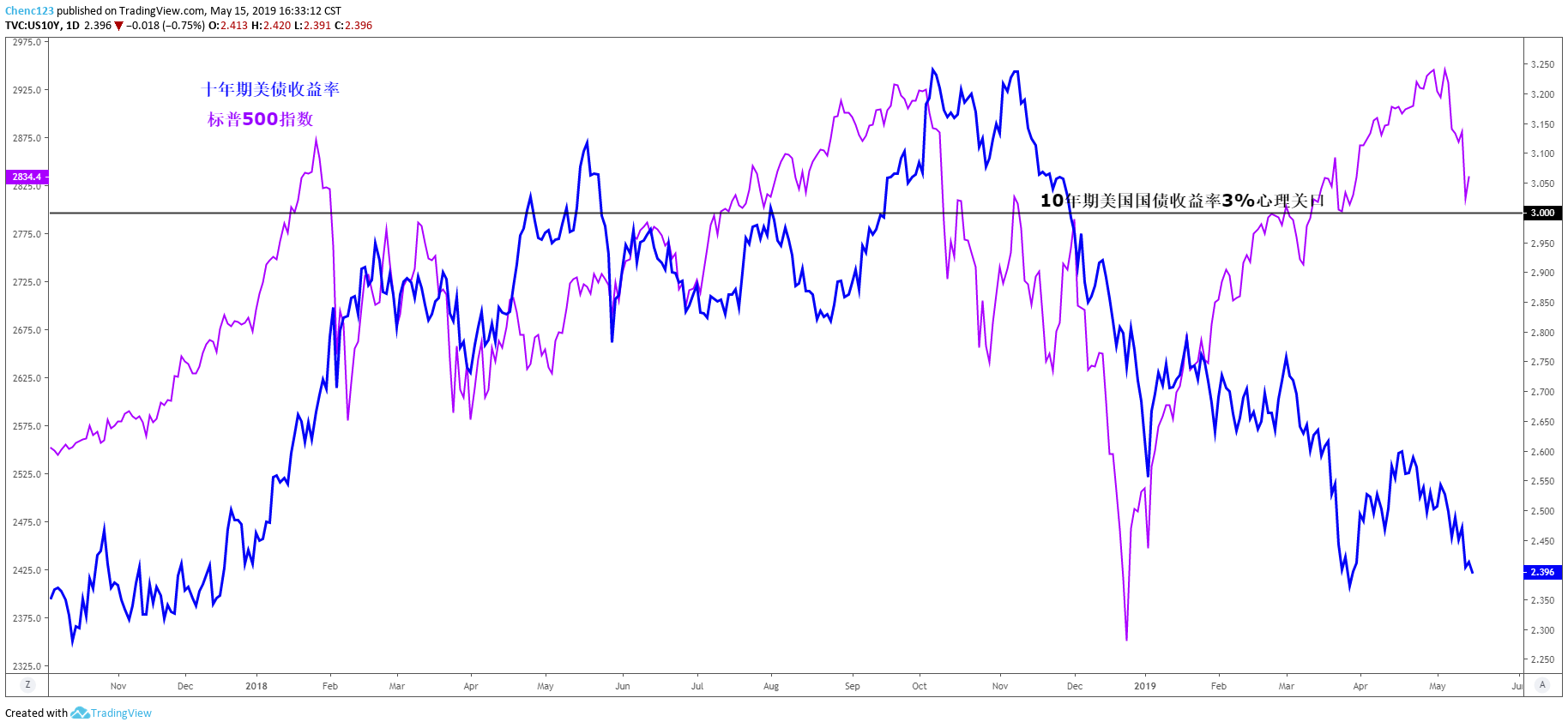 十年期美国国债收益率VS标普500指数