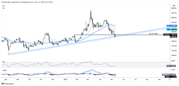 隔夜在美国4月CPI(消费者物价指数)数据显示通胀温和降温之后,金价展开反弹。数据显示,美国4月CPI年率录得8.3%,虽然高于彭博调查的普遍预期8.1%,但略低于3月录得的8.5%。